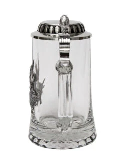 Glass Beer Stein With Plateau Pewter Lid And Hop Cone Thumblift
